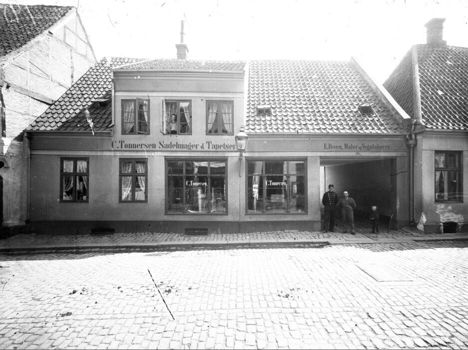 Sadelmager C. Tønnesens butik i Mejlgade