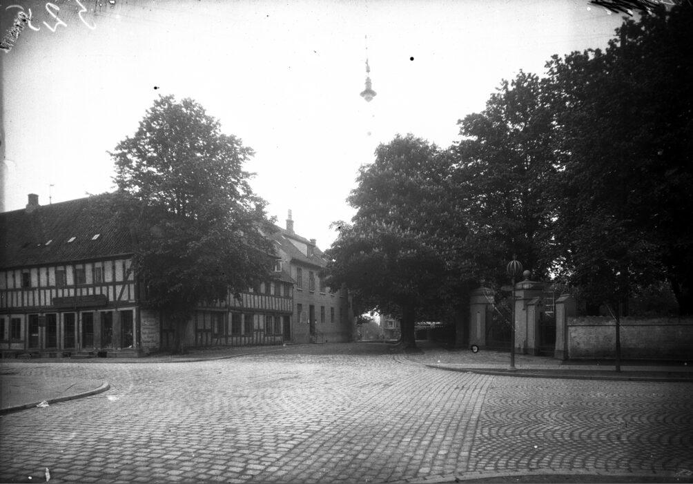 Hjørnet Frederiksgade - Frederiks Allé / Sønder Allé, set fra Vester Allé. Søndre Kirkegård til højre