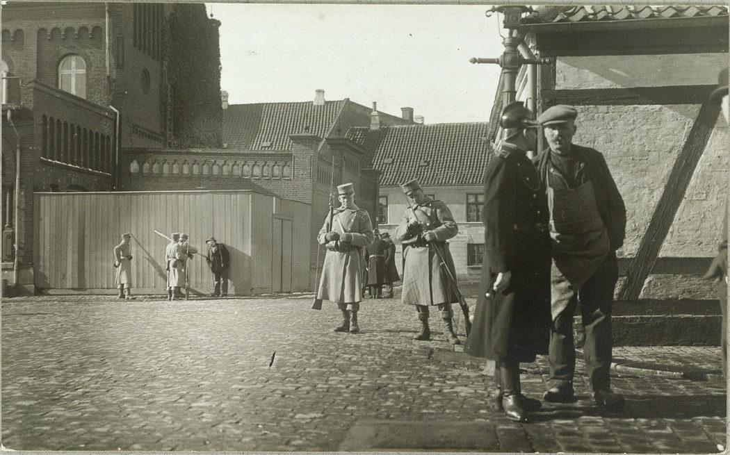 Politi og militær i Randers under strejken