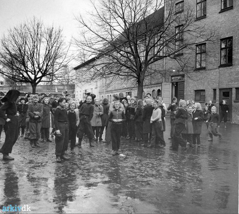 Skanderborg Kommuneskole. Her børnene i skolegården