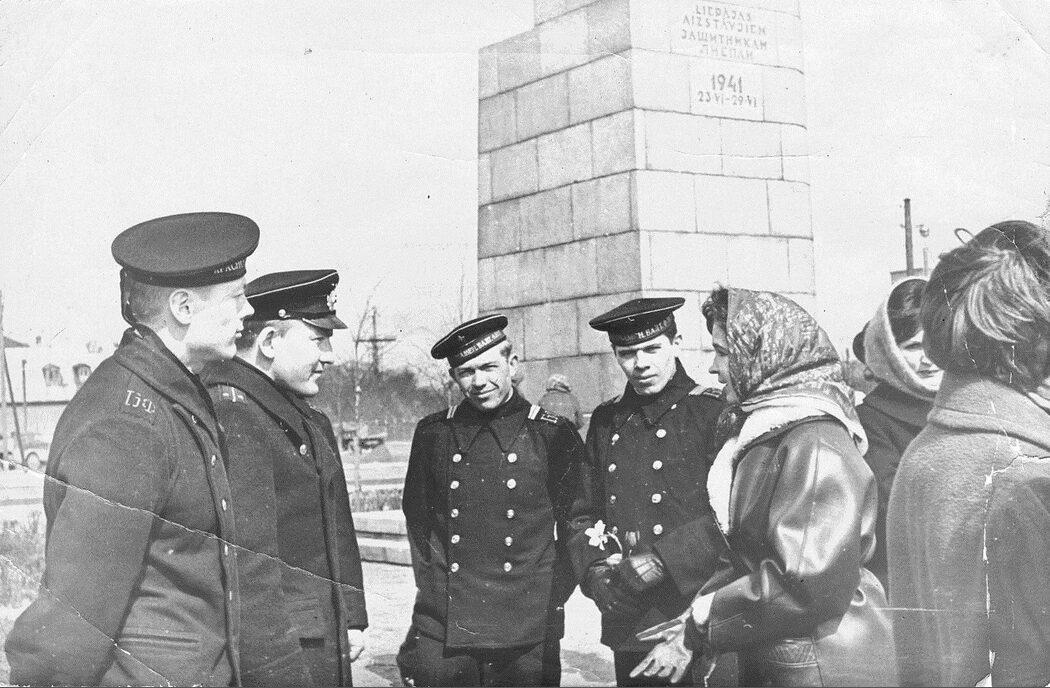 Матросы у памятника Защитникам Лиепаи