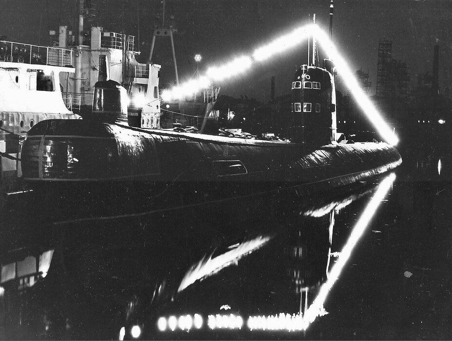 Ночная иллюминация на лодке Б-7