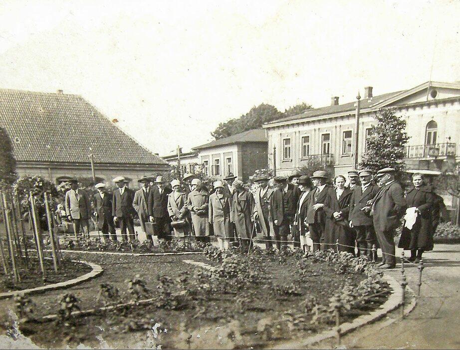 У клумбы