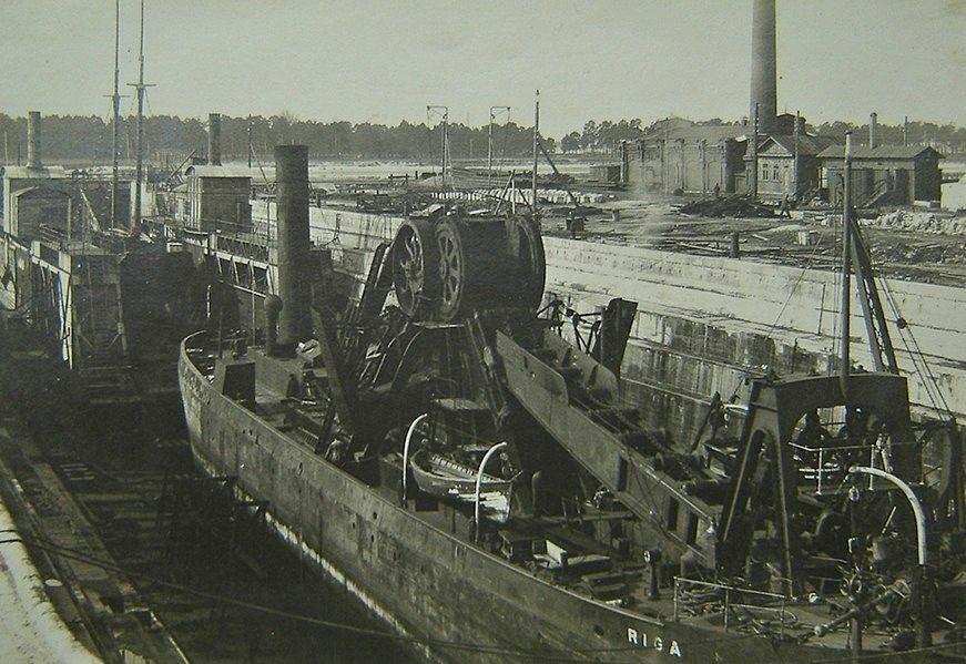 Земснаряд "Рига" и плавучий док
