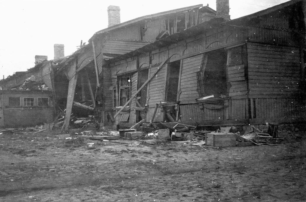 Здание бывшего эмигрантского вокзала, разрушенное при штурме Лиепаи