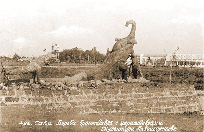 Скульптурная композиция "Борьба бронтозавра с цератозаврами"