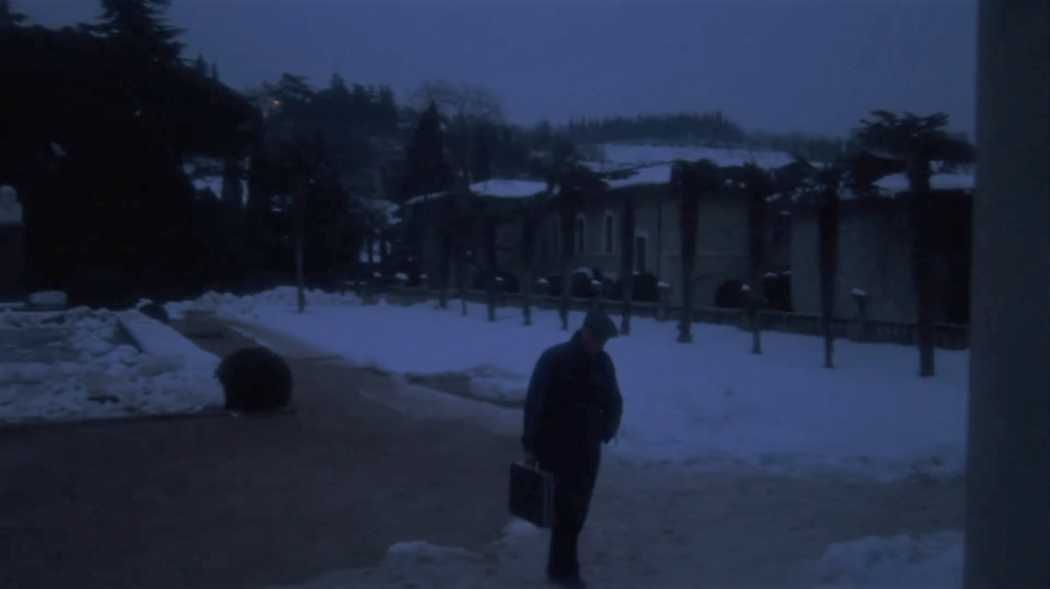 Площадь у голубого бассейна в снегу