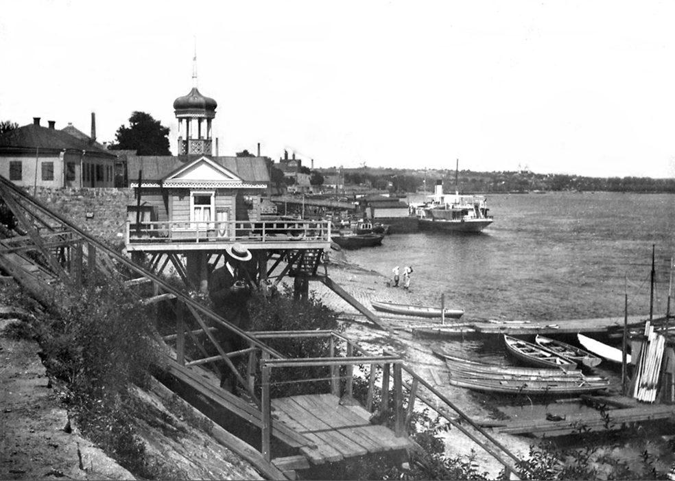 Лодочная станция и товарная пристань на Днепре в местечке Никополе