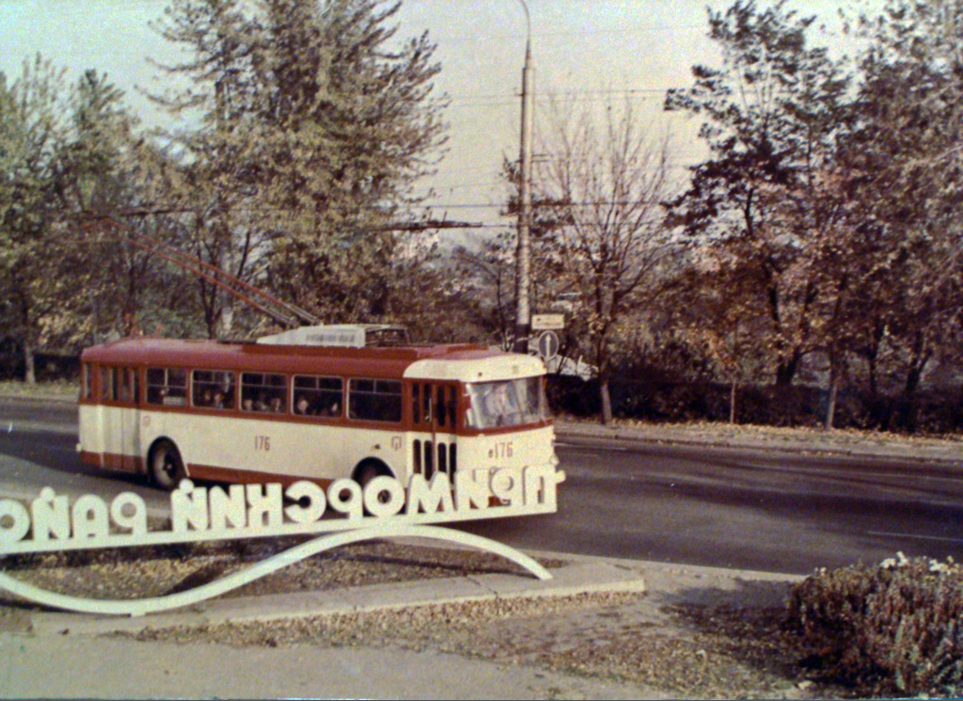 Шкода 9Tr №176 проезжает стелу Приморского района