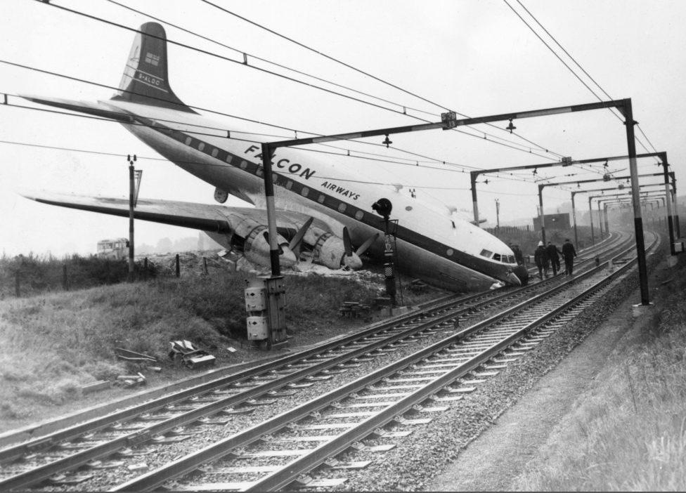 Aeroplane crash into railway line after brake failure during landing