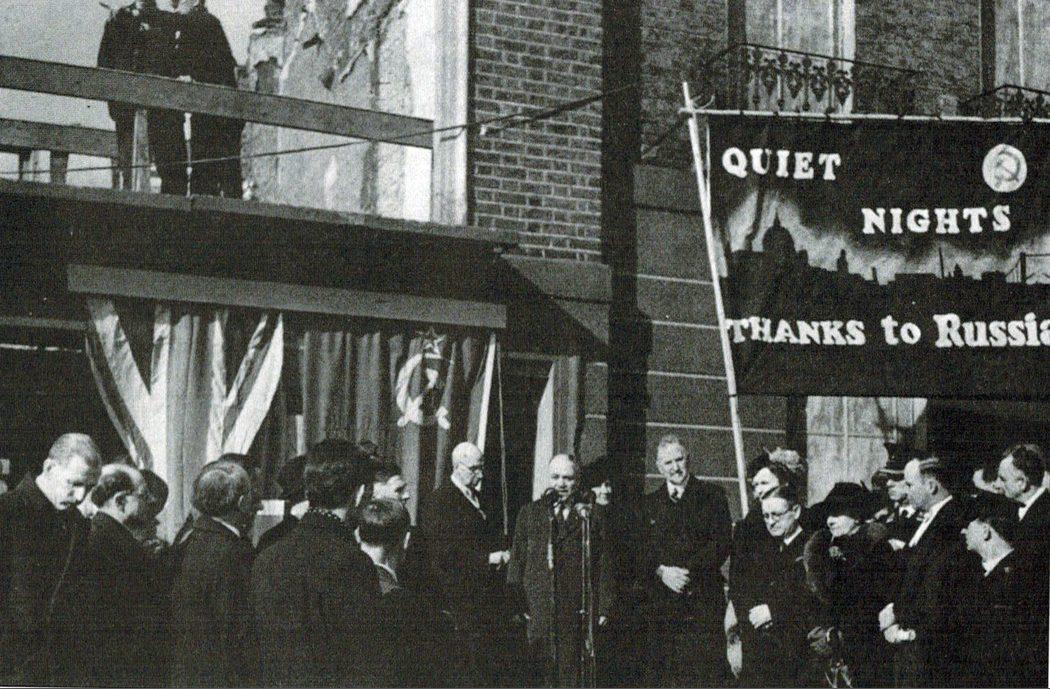 "London. Ambassador Maisky speaking at a ceremony to place a plaque"