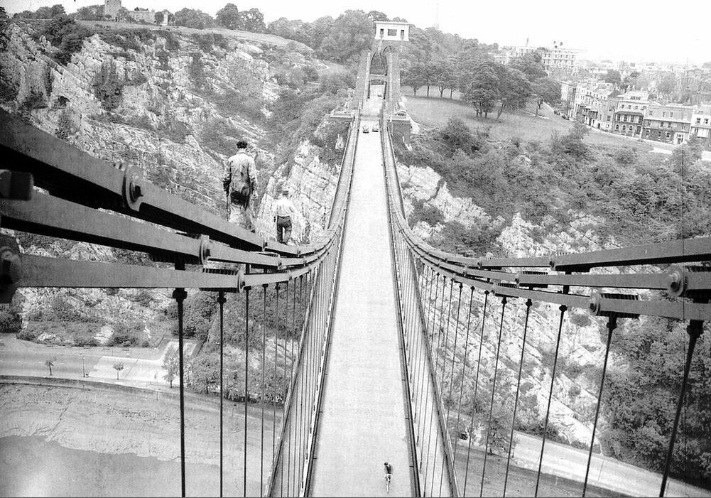 Maintenance workers on Brunel's world famous Clifton Suspension Bridge