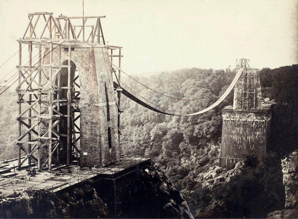 The Clifton Suspension Bridge under construction