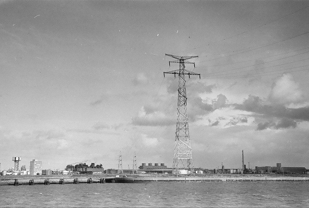 Antwerp Schelde Powerline Crossing. Pylon on Northern Schelde shore