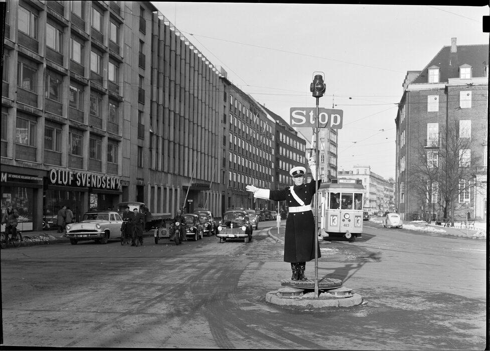 København. Færdselsbetjent i krydset ved Kampmannsgade / Vester Farimagsgade