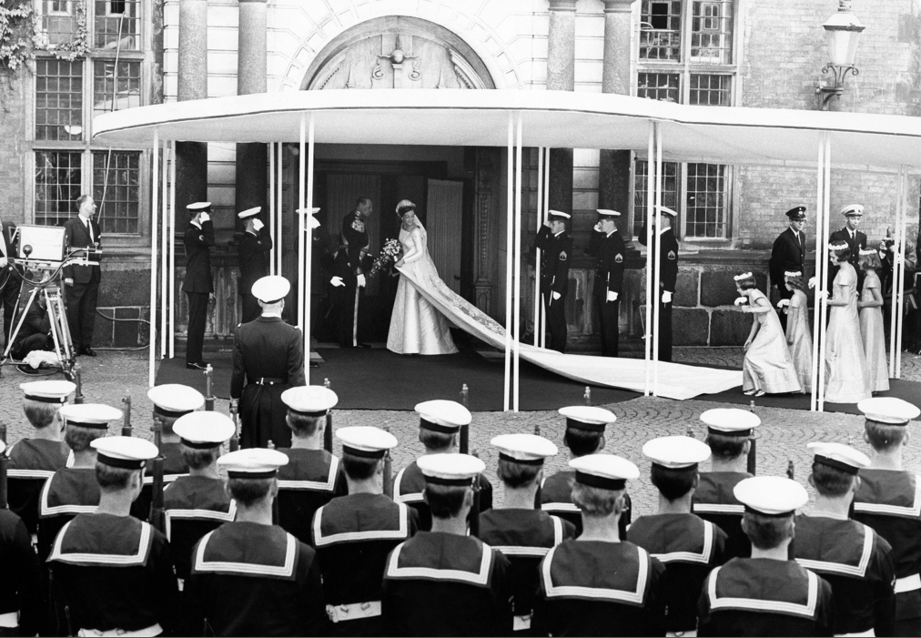 Kong Frederik IX og kronprinsesse Margrethe går ind i Holmens Kirken