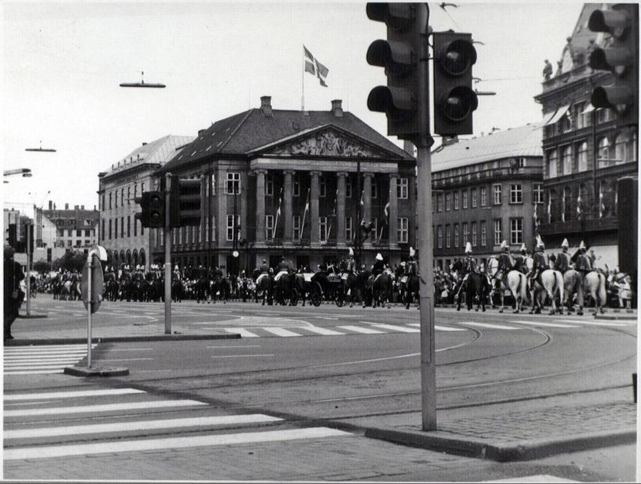 Kongens Nytorv. Kortege af garderhusarer set mod Holmens Kanal