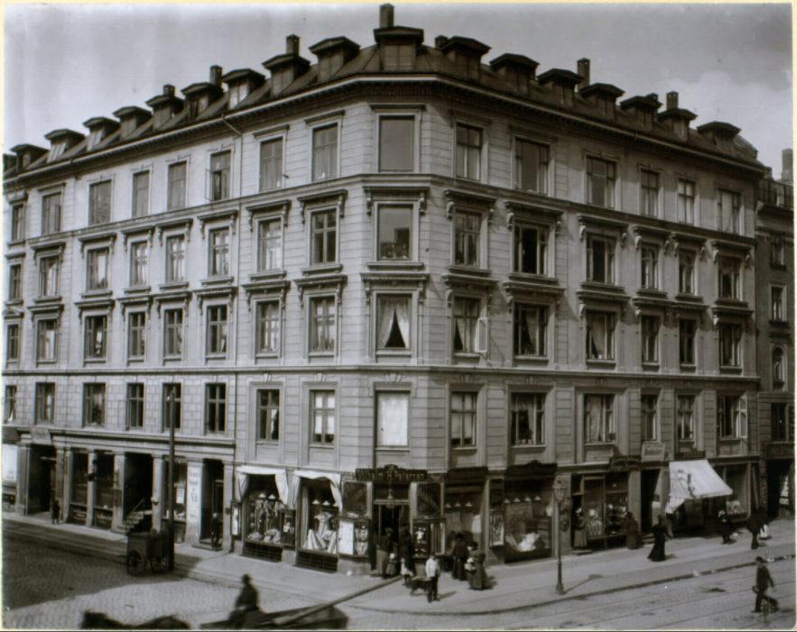 Østerbrogade 25. Ryesgadehjørnet med Vilhelm H. Petersens butik