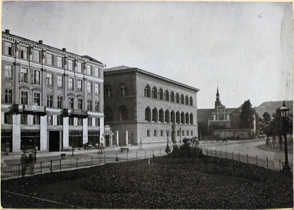 Hotel Kongen af Danmark og Nationalbanken på Holmens Kanal nr. 15 og 17 set mod Holmens Kirke