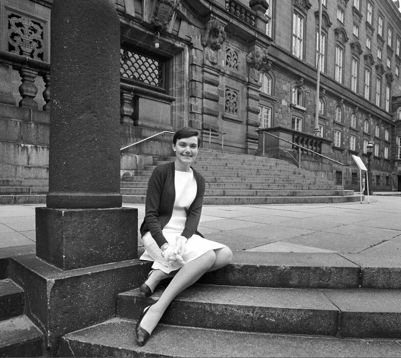 Hanne Reintoft på trappen til Christiansborg
