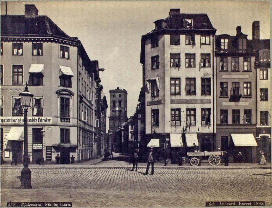 Admiralgade og Nikolaj Tårn i baggrunden set fra Højbro Plads