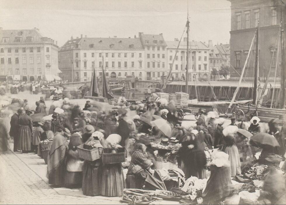 Loppetorvet på Gammel Strand set fra hjørnet af Snaregade mod Højbro og Ved Stranden