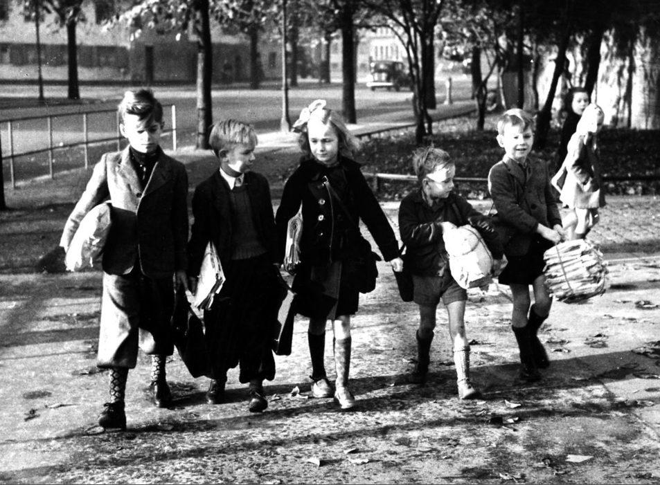 Nyboder. Børn har samlet gamle aviser under den store papirindsamling