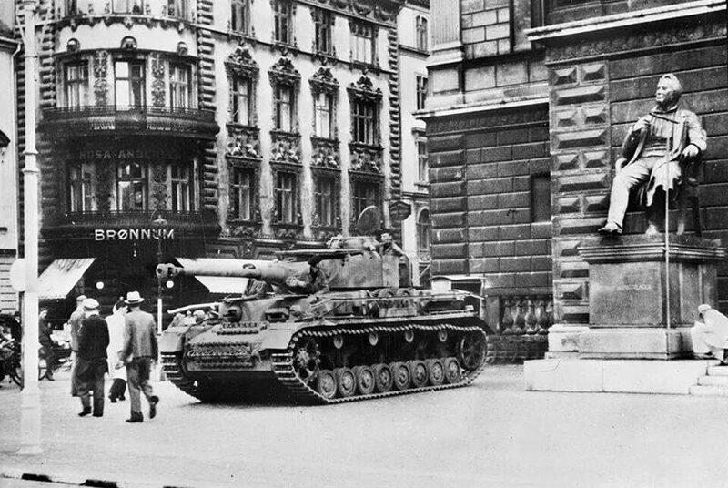 Tysk Panzer IV foran Det Kongelige Teater på Kongens Nytorv