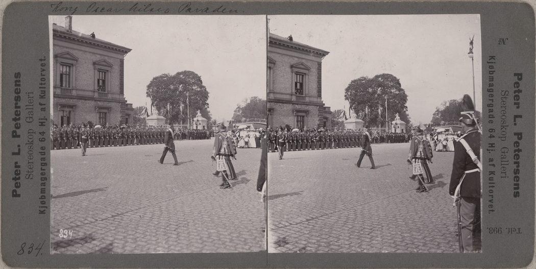 Nordre Toldbod. Kong Oscar hilser Paraden