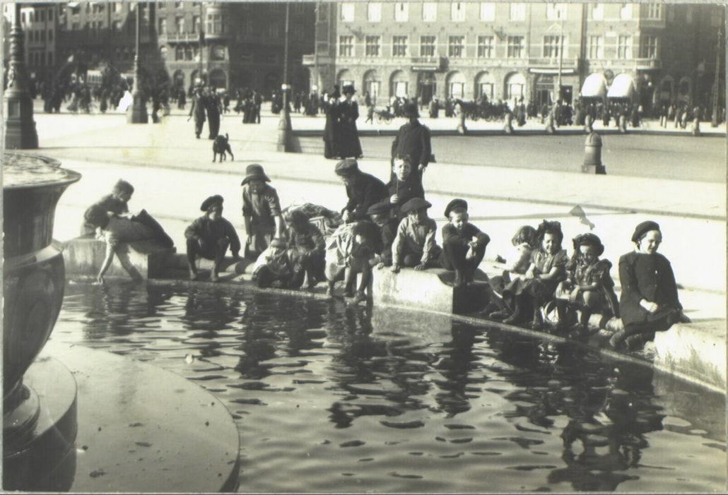 Rådhuspladsen, børn ved Dragespringvandet