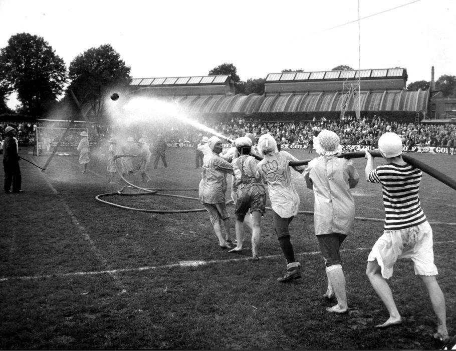Fagenes Fest på Østerbro Stadion. Der skal flyttes en bold på en snor med en vandstråle