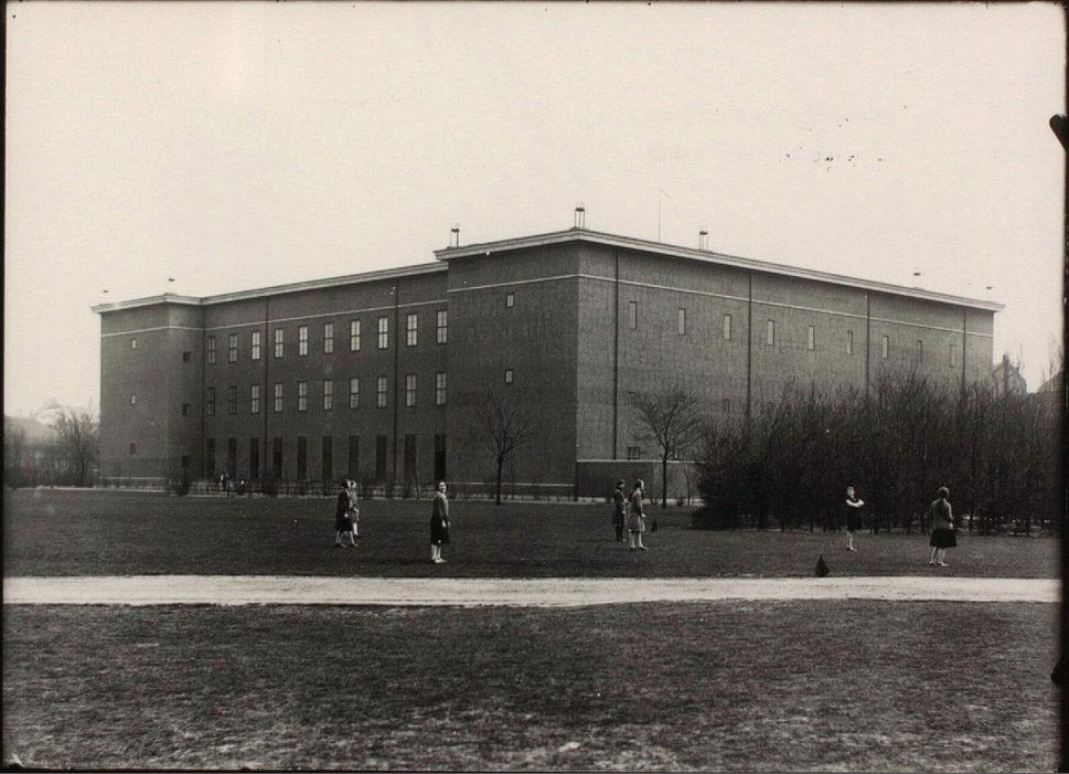 Bagsiden af Frimurerlogen på Blegdamsvej, set fra Fælledparken