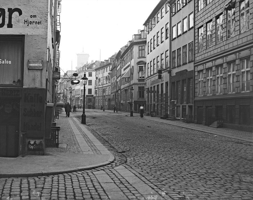 Udsigt fra hjørnet af Vandkunsten og Rådhusstræde
