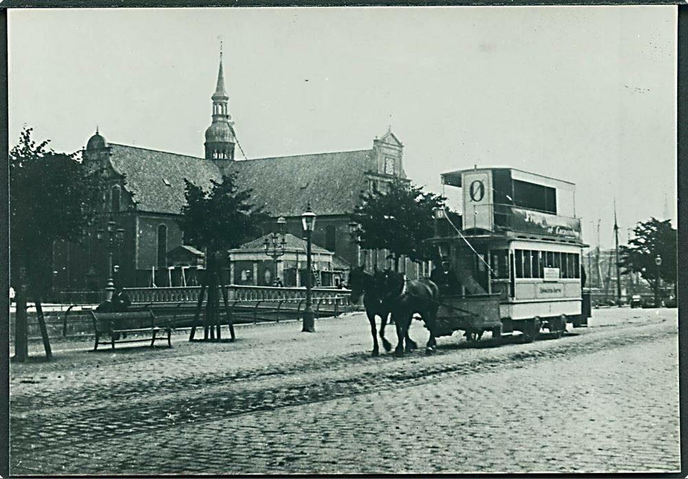 Hestesporvogn passerer Holmens Kirke
