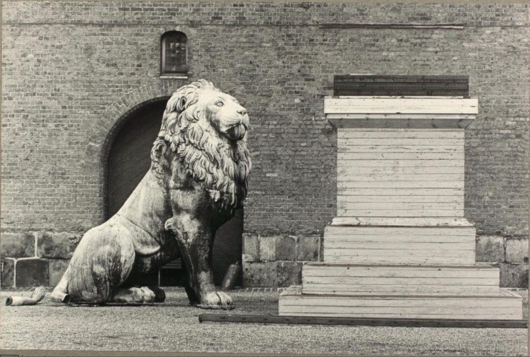 Istedløven ved siden af sin sokkel