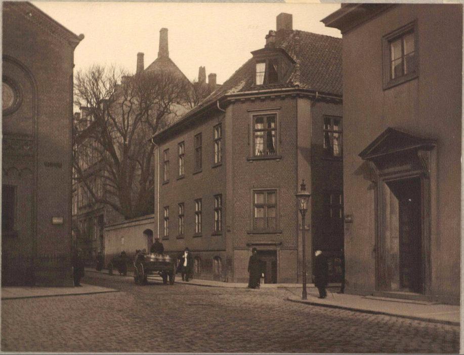 Fiolstræde. Stiftsprovsteboligen påhjørnet af Fiolstræde og St. Kannikestræde set fra Frue Plads