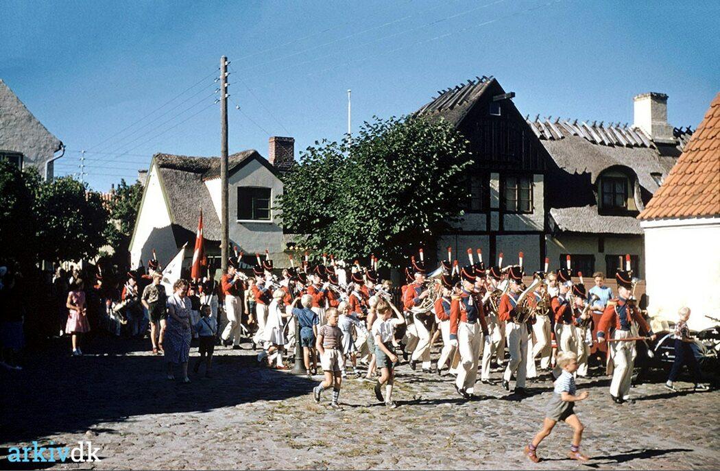 Dragør Boldklub, jubilæum. Roskildegarden marcherer over Jens Eyberts Plads