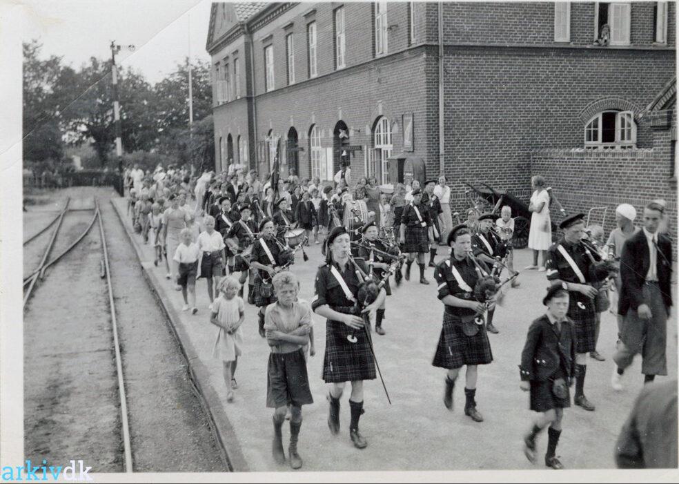 Dragør Station. Skotsk orkester på perronen