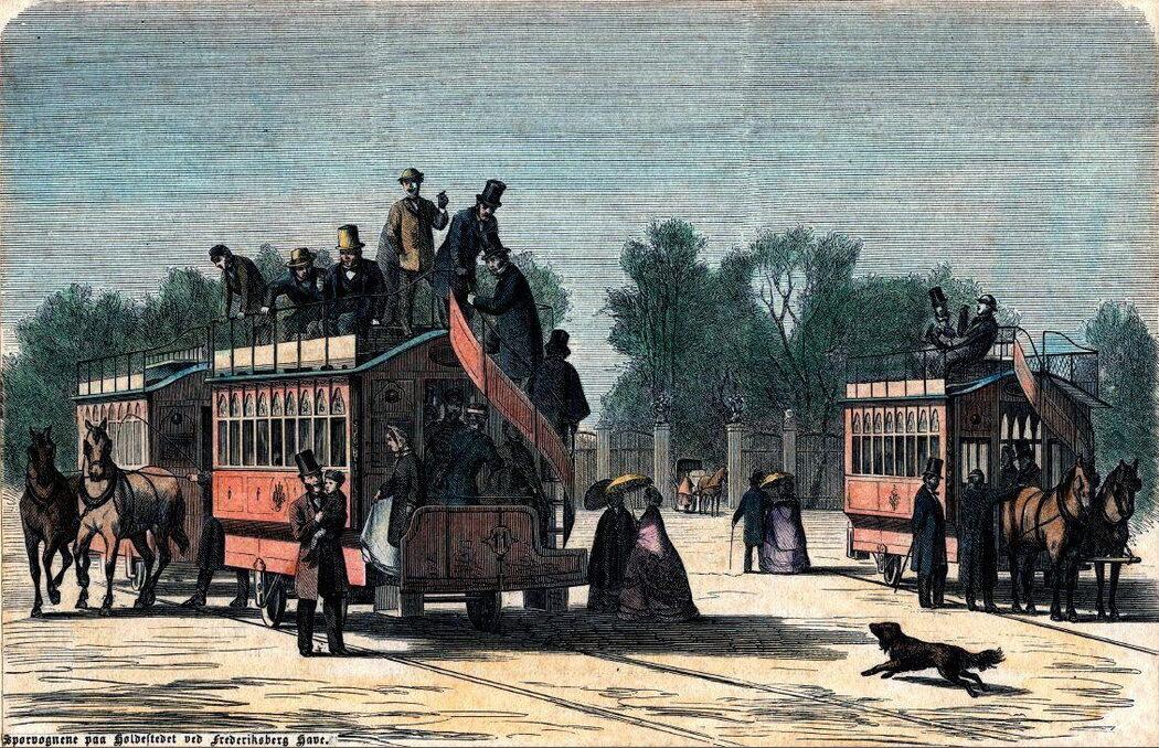 Hestetrukne sporvogne på Frederiksberg Runddel