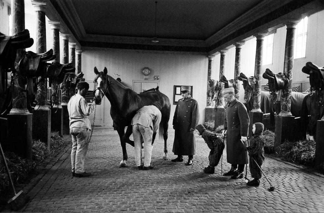 Staldene med de fine heste på officerskolen på Frederiksberg Slot