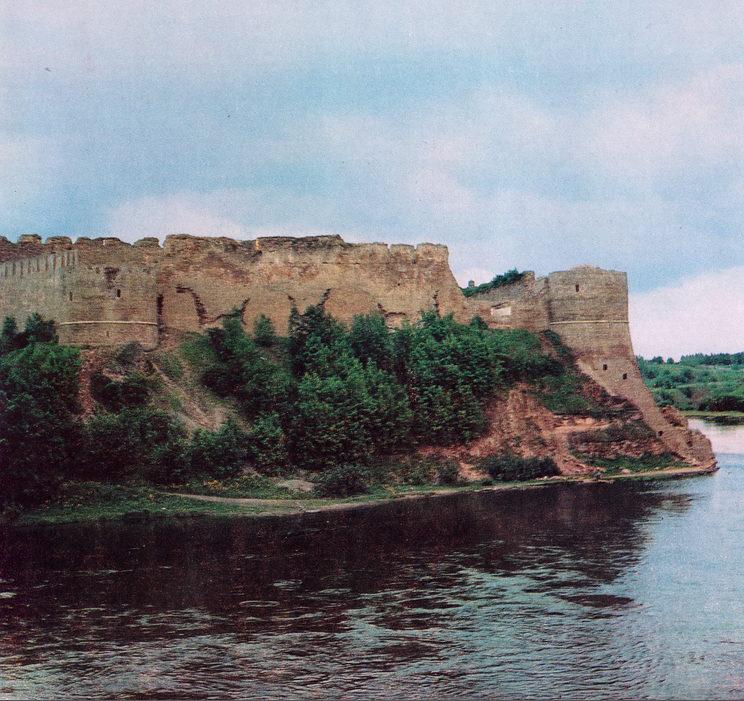 Вид на Ивангородскую крепость с моста Дружбы Народа