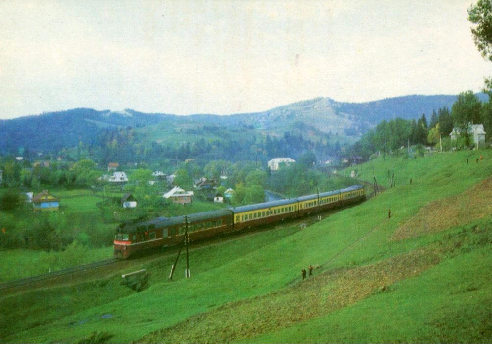 Дизель-поезд Д1 в окрестностях станции Ворохта, Ивано-Франковская область (1979-й год)