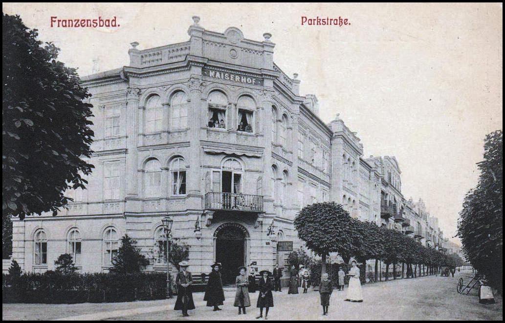 Františkovy Lázně. Francouzská. Hotel Císařský dvůr na rohu ulice (s dnešní Školní ulicí)