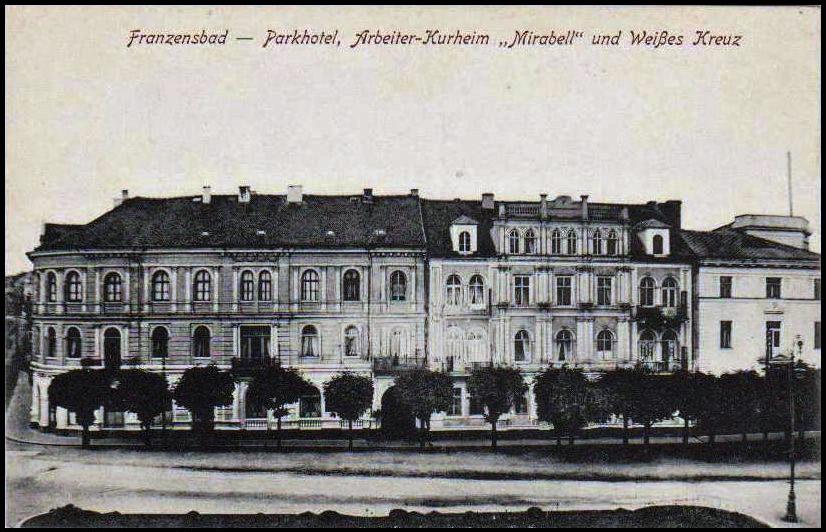 Františkovy Lázně. Nádražní. Park hotel, léčebný útulek, Bílý Kříž