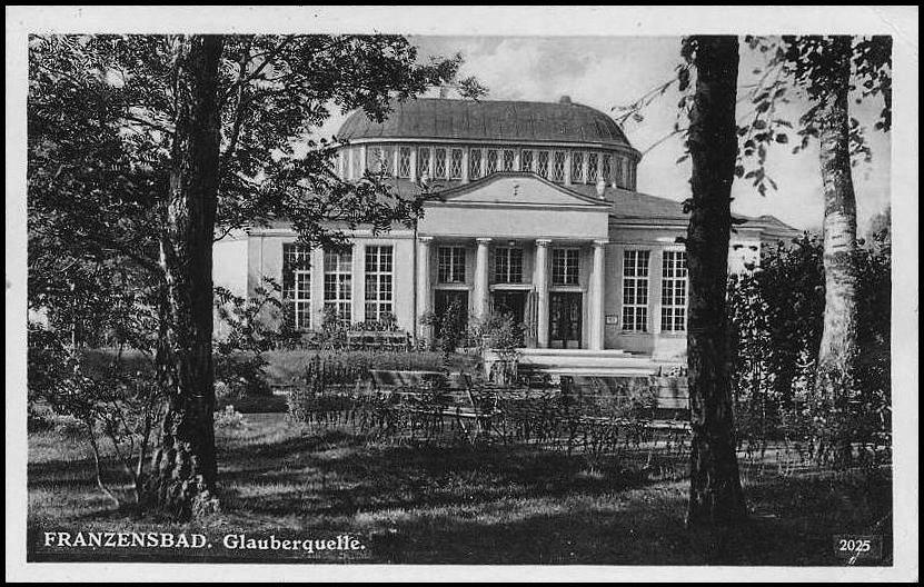 Františkovy Lázně. Pohled z parku na Glauberovy prameny