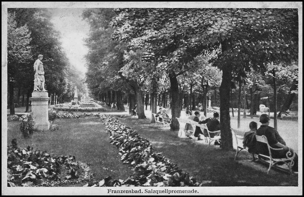 Františkovy Lázně. Posezení na promenádě k Solnému prameni