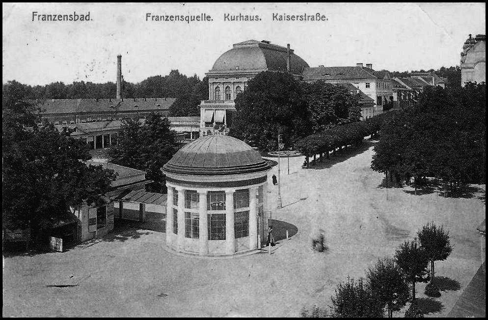 Františkovy Lázně. Františkův pramen, lázeňský dům a Císařská třída