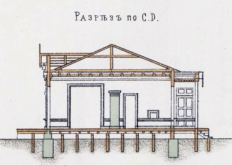 Пассажирское здание II-го класса. Разрез по C.D