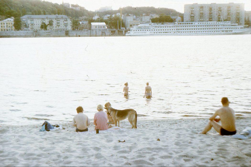 Пляж на Трухановом острове. Вид на Подол