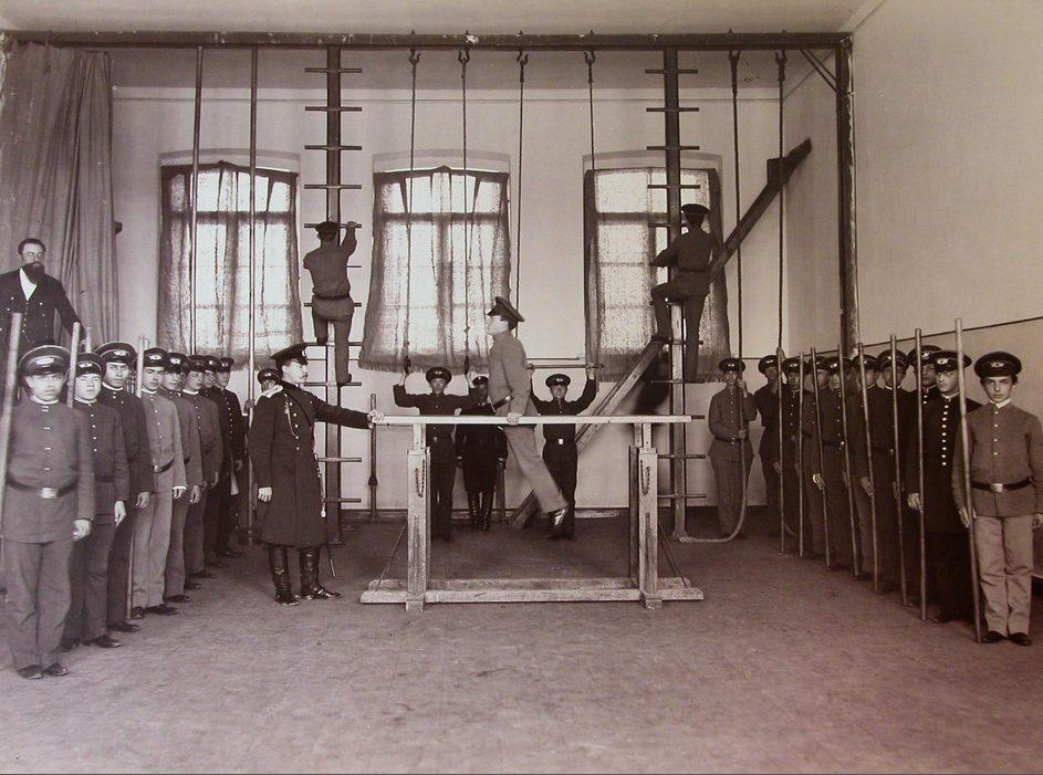Гимназисты Киево-Печерской гимназии в спортивном зале во время урока гимнастики Киевские гимназии, фото
